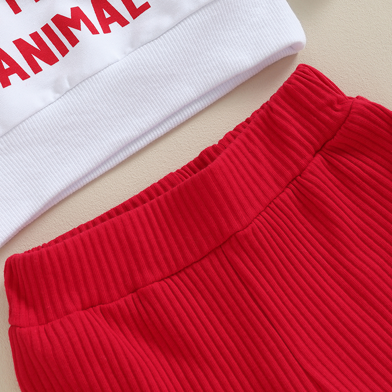Toddler Girl Christmas Clothes Letter Print Long Sleeve Sweatshirt Solid Color Flare Pants Outfit