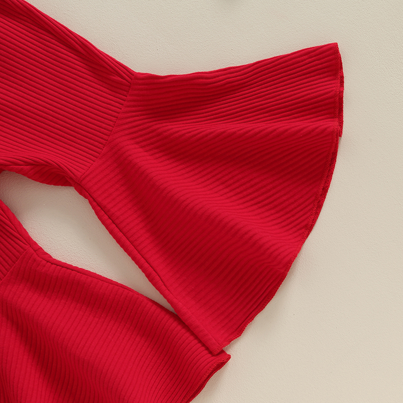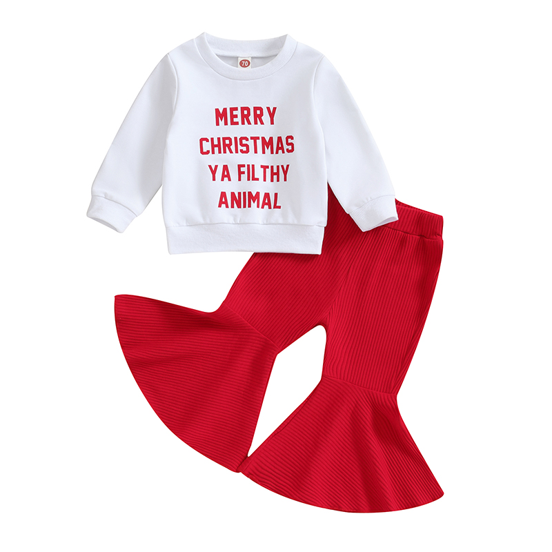 Baby Girl Christmas Clothes Letter Print Long Sleeve Sweatshirt Solid Flare Pants Outfit