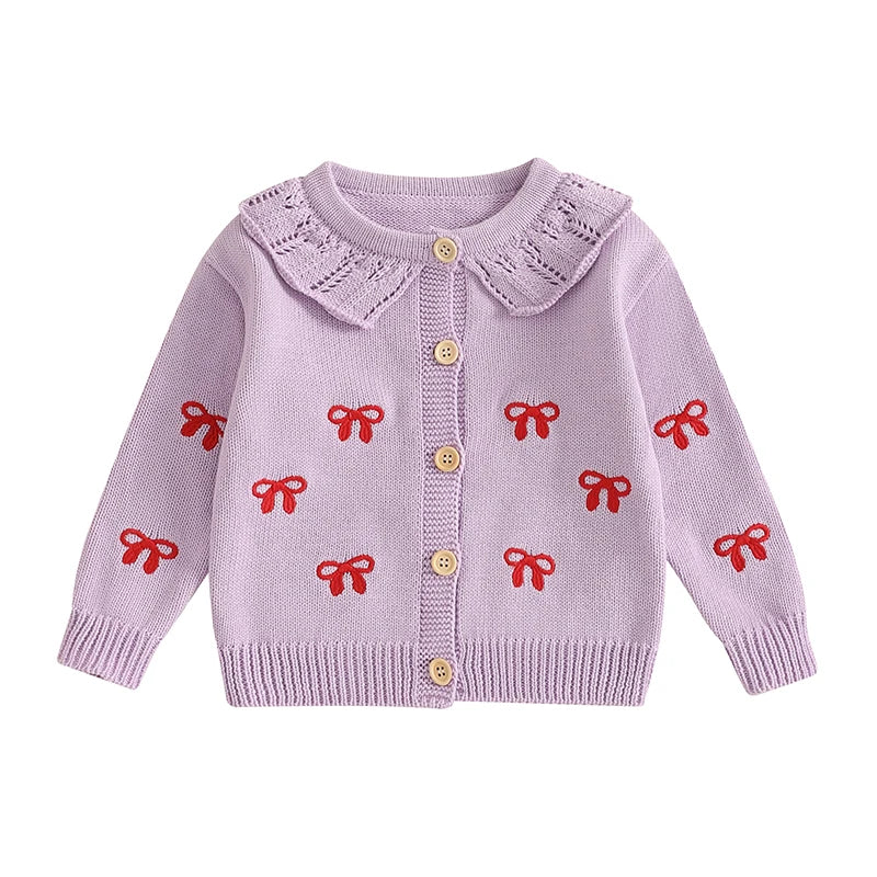 Valentine's Day Toddler Girls Fall Knit Cardigans Embroidery Bow Pattern Button Down Long Sleeve Crew Neck Baby Sweater Jackets