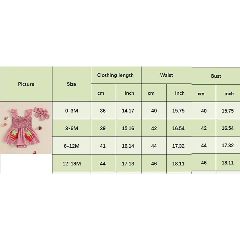 Baby Girl Plaid Romper Dress Strawberry Smocked Fly Sleeve Bodysuit with Headband 2Pcs Summer Outfit
