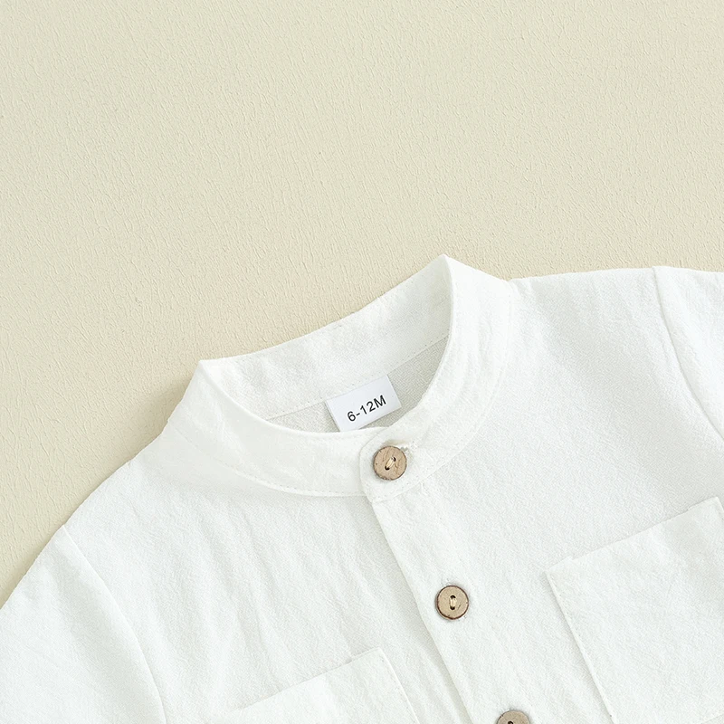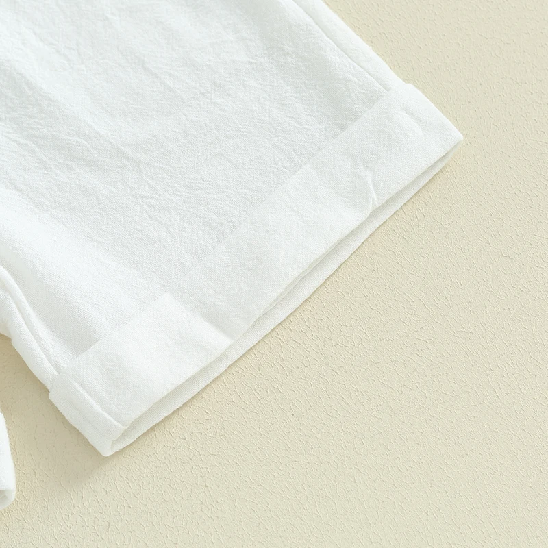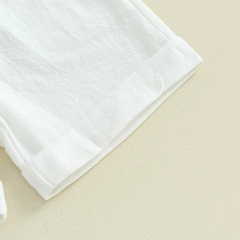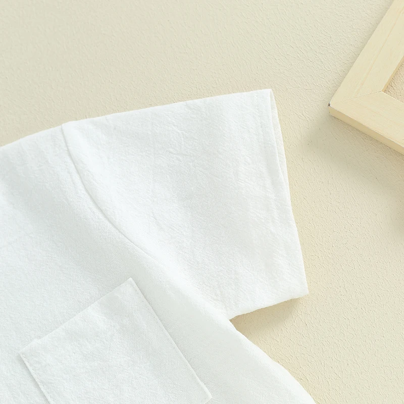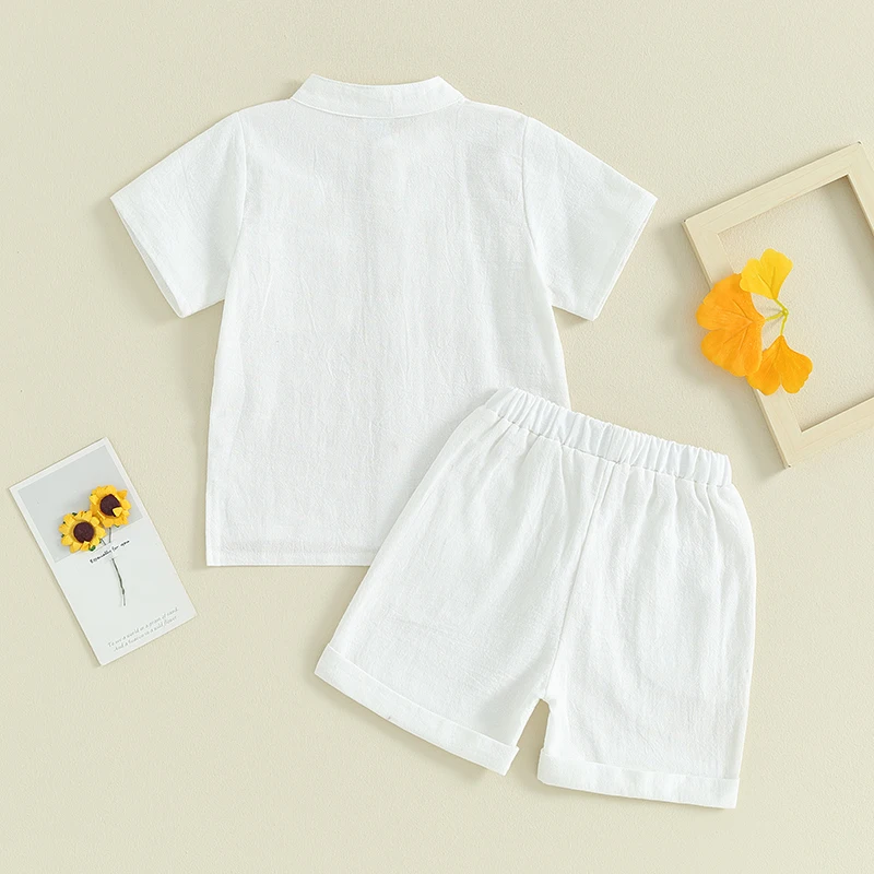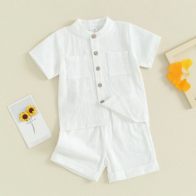 Kids Boys Summer Linen Outfits Solid Color Buttons Short Sleeve Tops and Elastic Waist Shorts 2Pcs Clothes Set