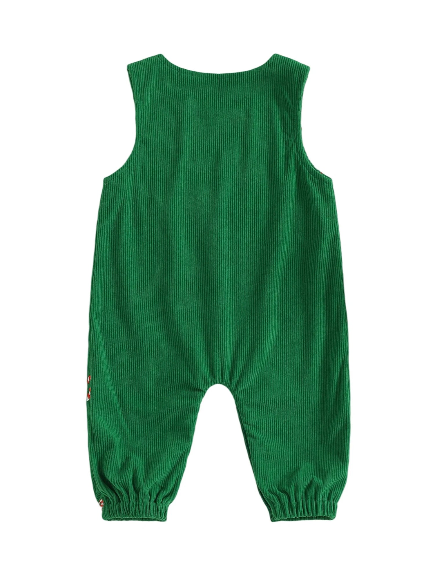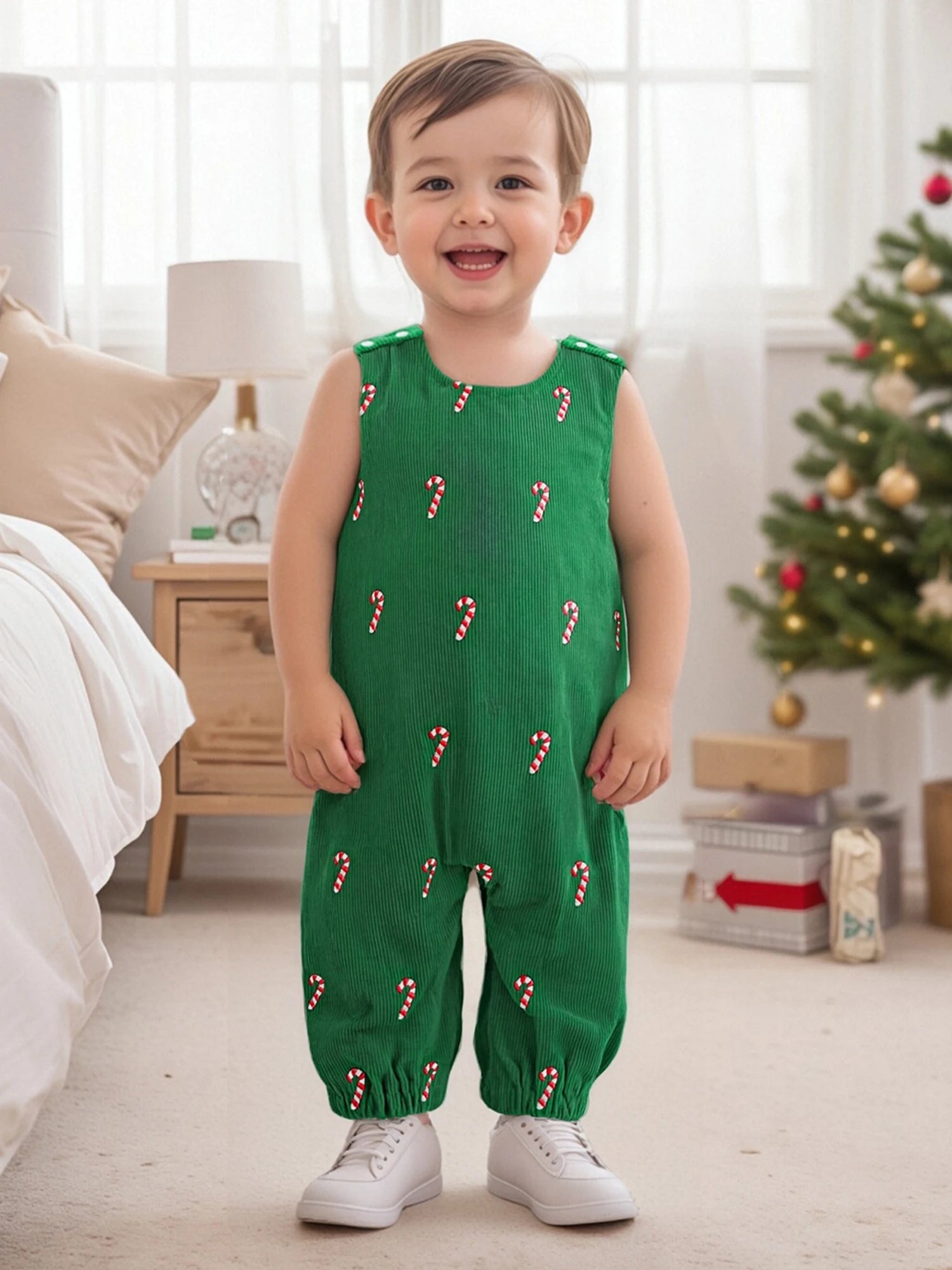 Boys Girls Christmas Romper Sleeveless Round Neck Candy Cane Embroidery Jumpsuit